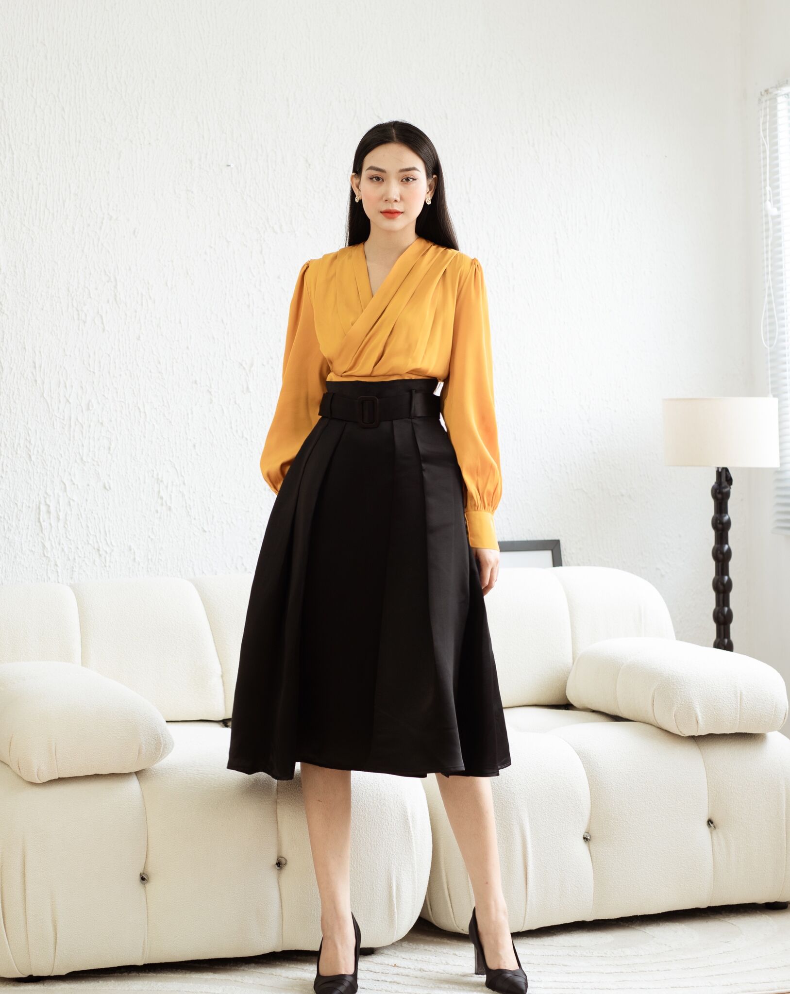 ● Kiểu dáng : Chân váy thiết kế dáng xòe xếp ly có túi hông